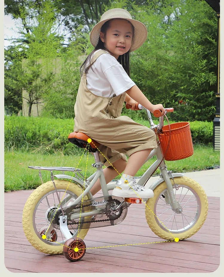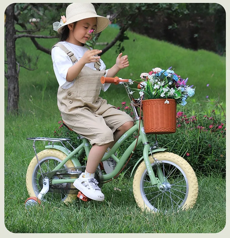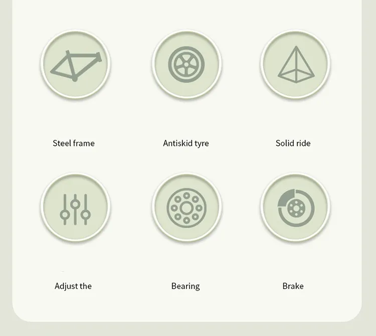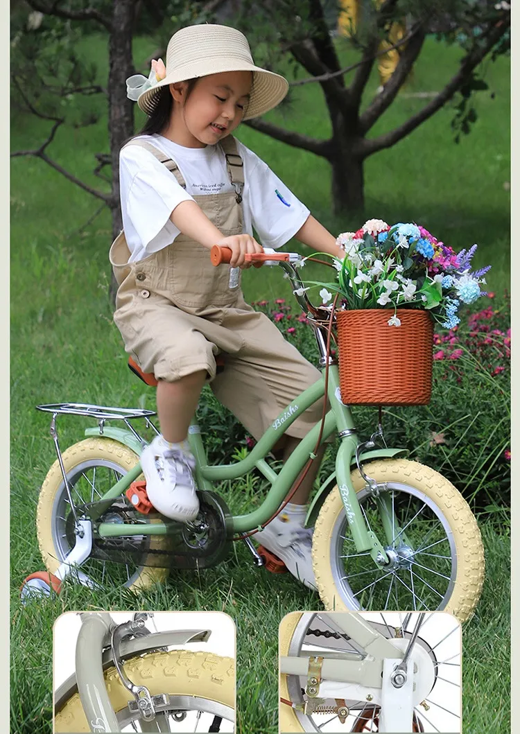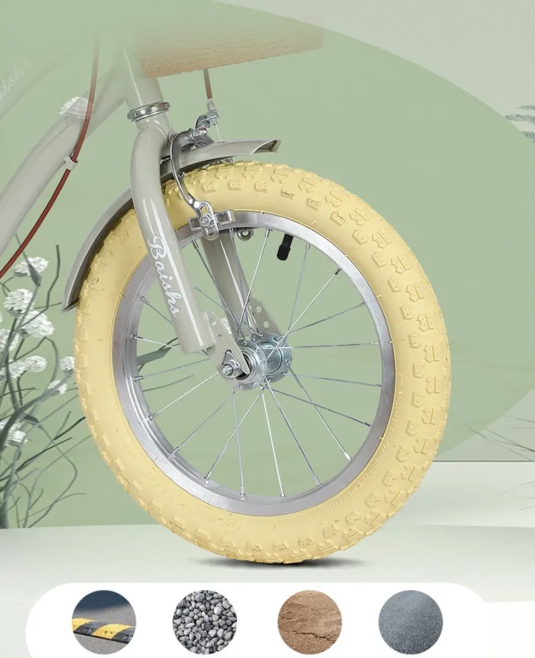 product details① Product Name: Children's Cycling Bike② Product size: 12/14/16/18cun③ Product colors: gray, pink, green④ Carbon steel frame⑤ Anti-skid tire⑥ Safe and stable⑦ Height adjustment⑧ Smooth bearing⑨ Sensitive brake