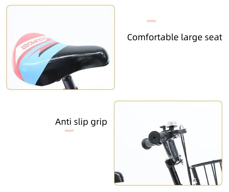 product details① Product Name: Children's Mountain Bike② Product size: 12/14/16 inches③ Product colors: Red, Blue, Yellow④ Sturdy frame⑤ Thickened material⑥ Comfortable saddle⑦ Silent auxiliary wheel⑧ High carbon steel frame⑨ High carbon steel thickened pipe wall⑩ Fish scale welding design⑪ Car body spray treatment⑫ Anti slip and wear-resistant wheels⑬ Safe and sensitive braking